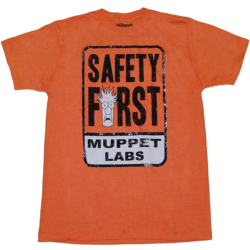 Muppet Labs, where the future is being made today. The home of technological breakthroughs, and sundry expolsions. Headed by Dr. Brunsen Honeydew, and trusted assistant Beaker. This officially licensed adult Muppets t-shirt features Beaker and Muppet Labs, Safety First motto. This heather orange, slim fit shirt is made from 100% cotton. Be sure to check out our Size Chart to get an idea of the average size and dimensions of this Kermit DJ Headphones tshirt style. Check back often for some of our Muppets clothing and other Muppets merchandise at great prices only at AnimationShops.com.