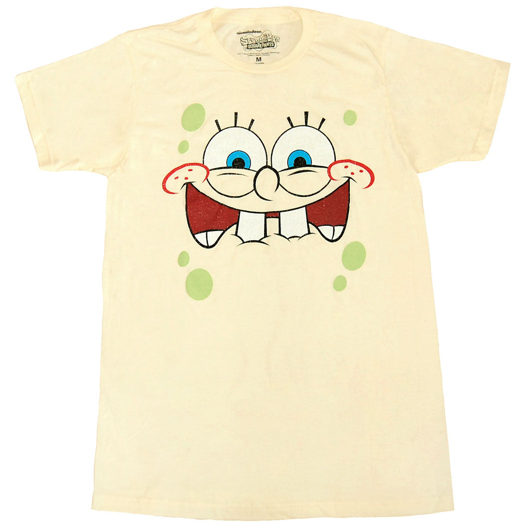 SpongeBob! Who can resist this cute sea creature? This cool t-shirt is all face...SpongeBob's that is. This officially licensed distressed print slim fit adult t-shirt is light yellow, and is made of 100% cotton. Be sure to check out our Size Chart to get an idea of the average size and dimensions of this SpongeBob Excited Face tshirt style. Check back often for some of our SpongeBob SquarePants clothing and other SpongeBob merchandise at great prices only at AnimationShops.com.